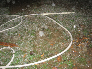 It was so exciting for us Southern Californians. It hailed (the biggest pieces Colette has ever seen) during dinner last night. It lasted a long time so the kids all went outside and road boogie boards down our hill. We hope there's not a lot of damage to our yard plants or local crops. But boy was it fun! The fun lasted until everyone got wet and cold then we threw all 3 kids into the tub (Hazel the Beagle refused to get bathed).